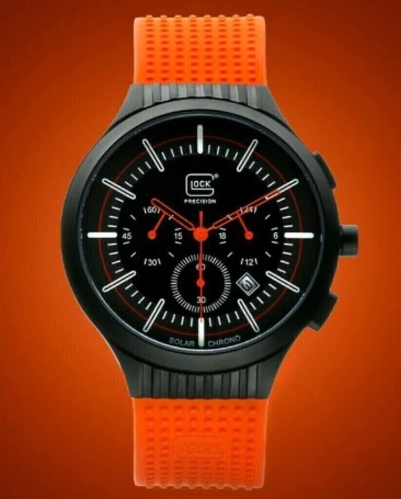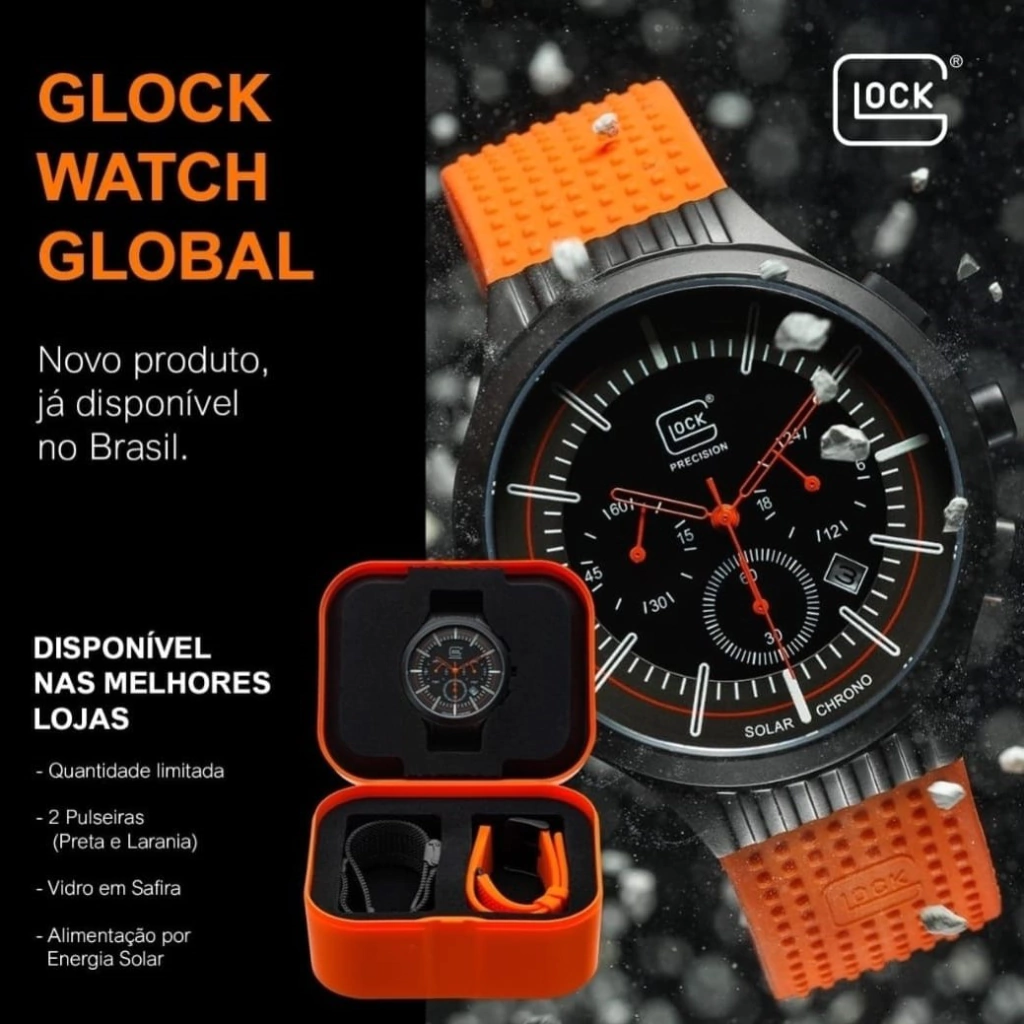 Apresentamos o "Glock Watch Global Precision & Perfection", o relógio perfeito para quem busca estilo, precisão e durabilidade em um só acessório. Com pulseiras elegantes e resistentes, o relógio é fabricado em titânio e possui vidro de safira, garantindo proteção contra arranhões e uma aparência marcante. Sua função de cronógrafo e alimentação solar oferecem praticidade no dia a dia, enquanto sua resistência à água de 10 ATM permite explorar o mundo sem limitações. Não perca a oportunidade de adquirir este relógio versátil e sofisticado, que acompanhará você em todas as ocasiões, seja em eventos formais ou em suas aventuras ao ar livre.